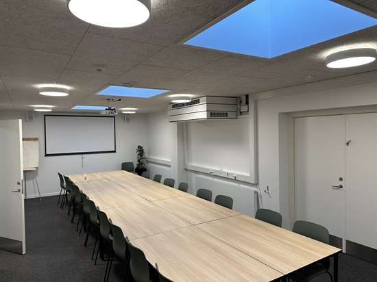 Dette mødelokale findes på 1. sal, først for på højre hånd. Lokalet kan rumme op til 20 personer.